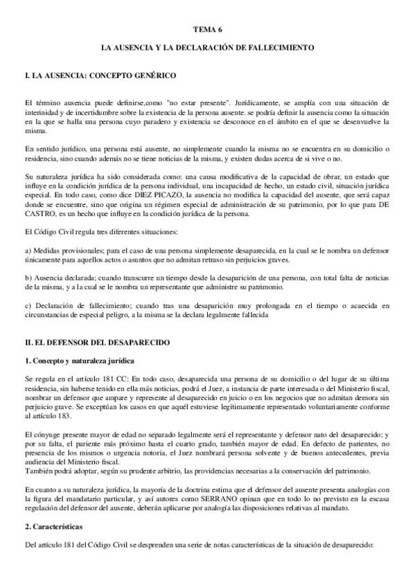 He publicado nuevos apuntes de 1º Derecho Civil I: TEMA-6-LA-AUSENCIA-Y-LA-DECLARACION-DE-FALLECIMIENTO-1.docx