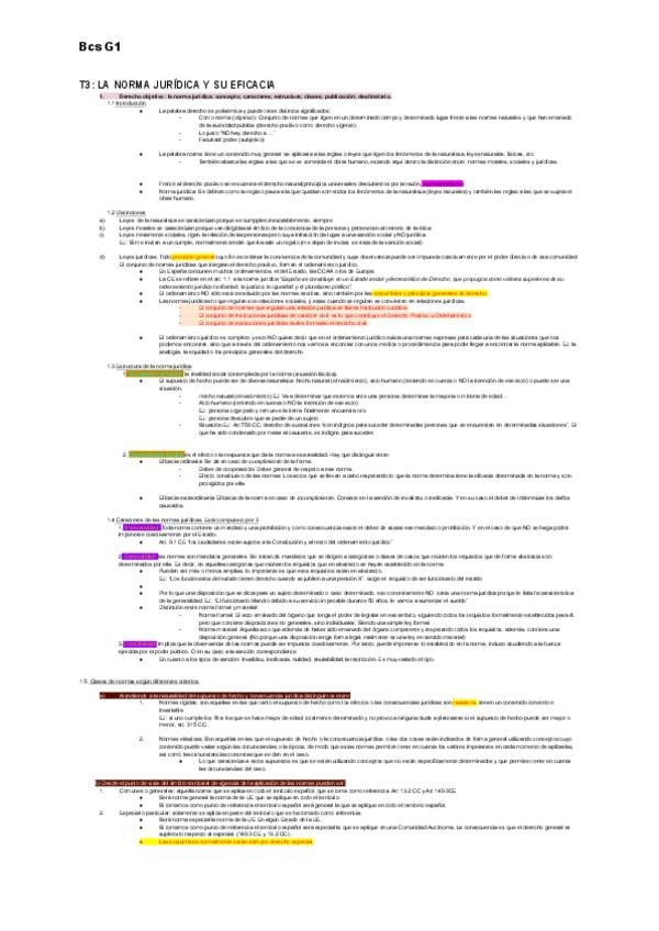Apuntes del tema 3 de derecho civil sobre la norma jurídica y su eficacia.