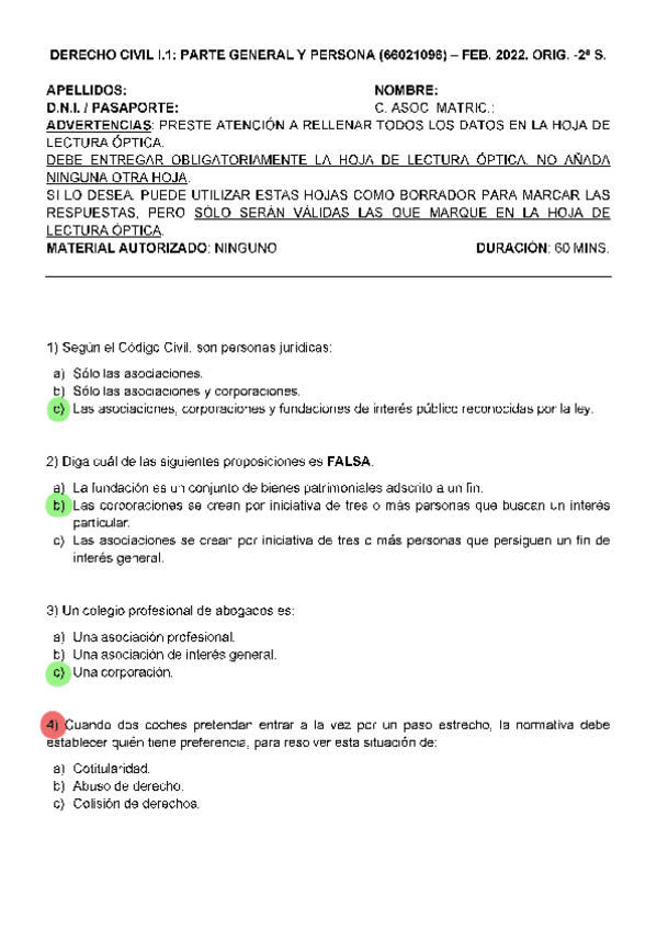EXAMENES RESUELTOS AÑO 2021-2022 DERECHO CIVIL I: PARTE GENERAL Y PERSONA