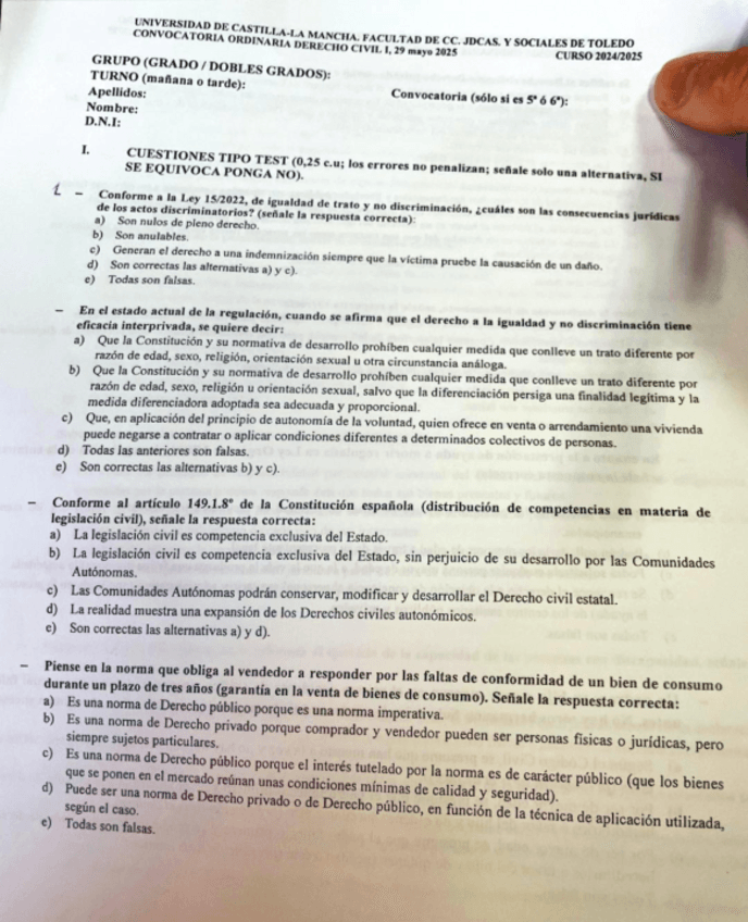 He publicado nuevos examenes de 1º Derecho Civil I: Preguntas examen test