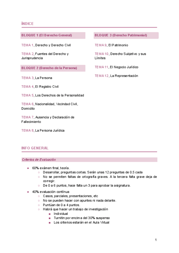 He publicado nuevos apuntes de 1º Derecho Civil I: Temario