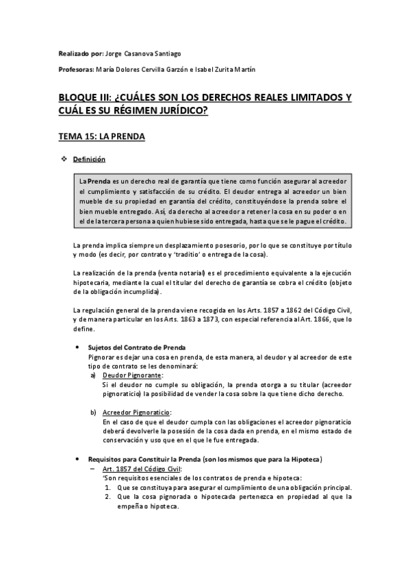 He publicado nuevos apuntes de 2º Derecho Civil II: Tema 15 (La Prenda).pdf