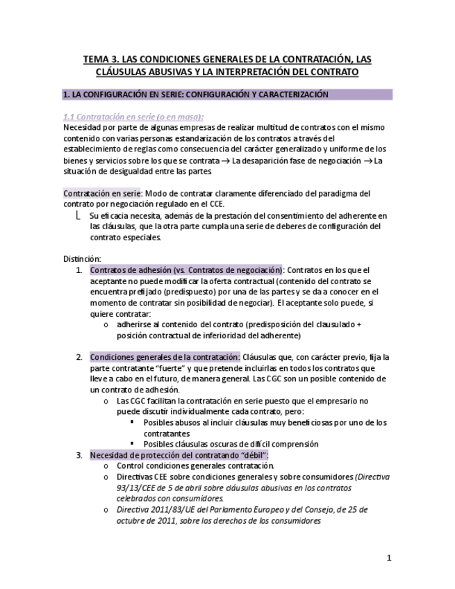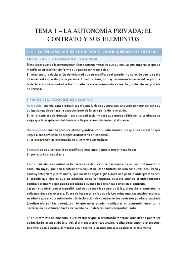 Esquema TEMA 1 Tipos de Contratos y Negocios Jurídicos
