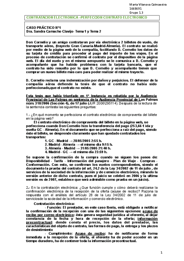 RESUMEN Y APUNTES DEL CASO PRÁCTICO Nº1 CON EL ANÁLISIS DE LA SENTENCIA Y APUNTES TOMADOS EN EL SEMINARIO