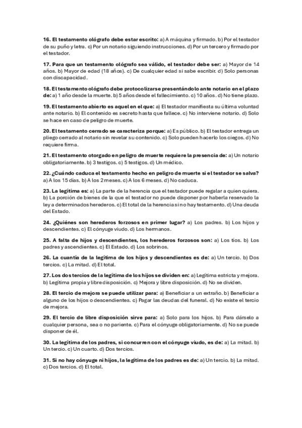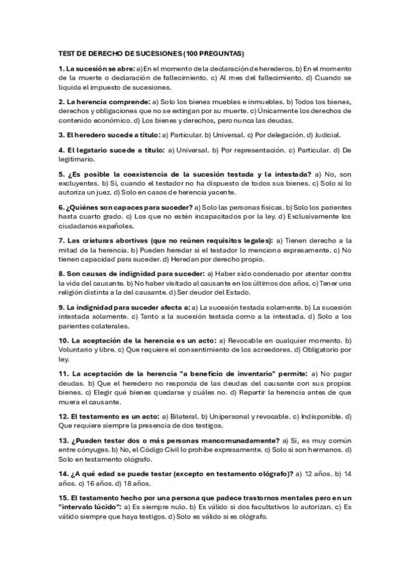 TESTS DE LOS TEMAS DE DERECHO DE SUCESIONES. RESPUESTAS SOLUCIONADAS JUSTIFICADAS JURÍDICAMENTE.