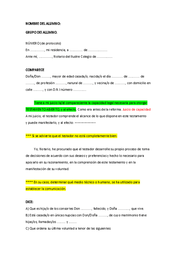 testamento examen