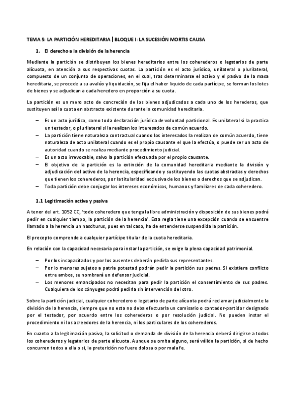 He publicado nuevos apuntes de 4º Derecho Civil VI: Tema 5. La partición.pdf