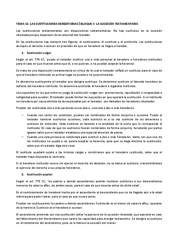 He publicado nuevos apuntes de 4º Derecho Civil VI: Tema 11. Las sustituciones hereditarias.pdf