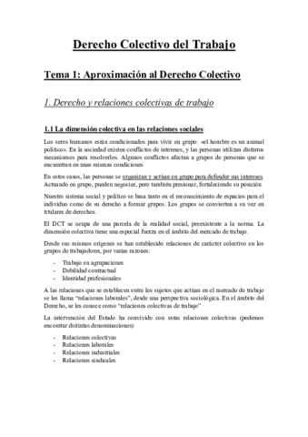 Apuntes completos de Derecho COolectivo
