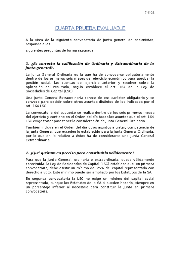 He publicado nuevos apuntes de 2º Derecho Comercial: Examen ordinario práctico Junta derecho (resuelto)
