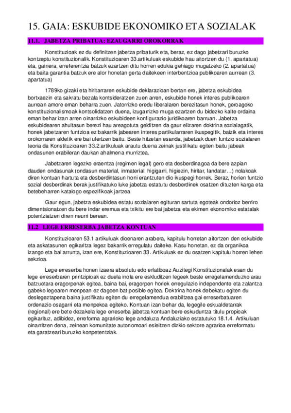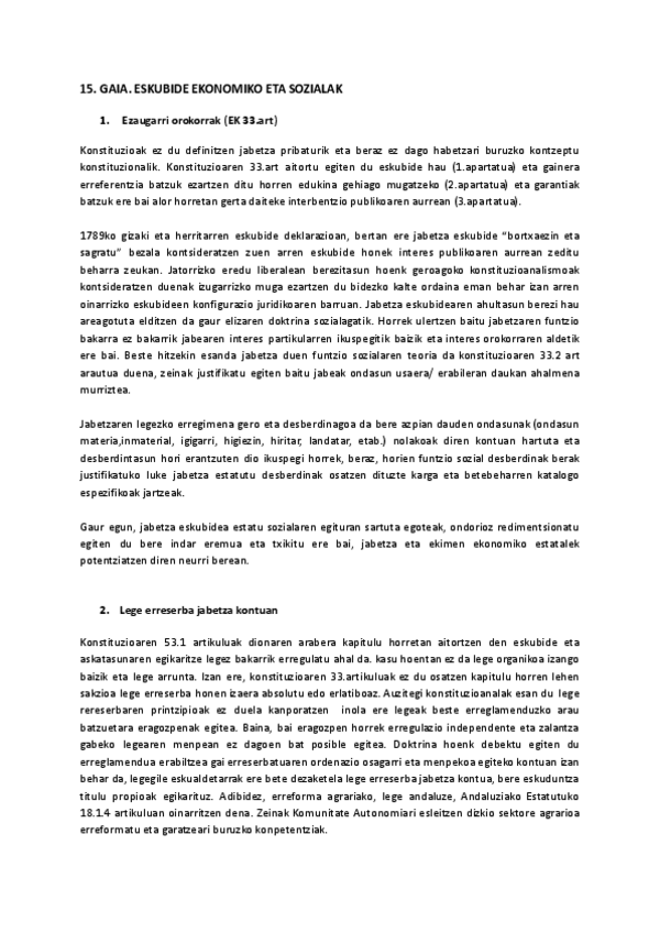 Konstituzio Zuzenbidea I - 15. Gaia: eskubide ekonomikoak, sozialak eta kulturalak (2025/2026)