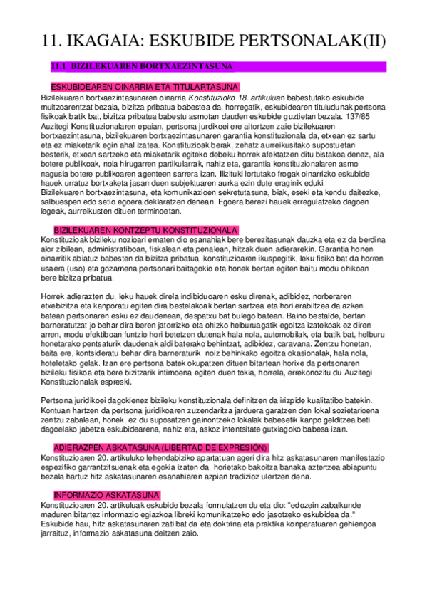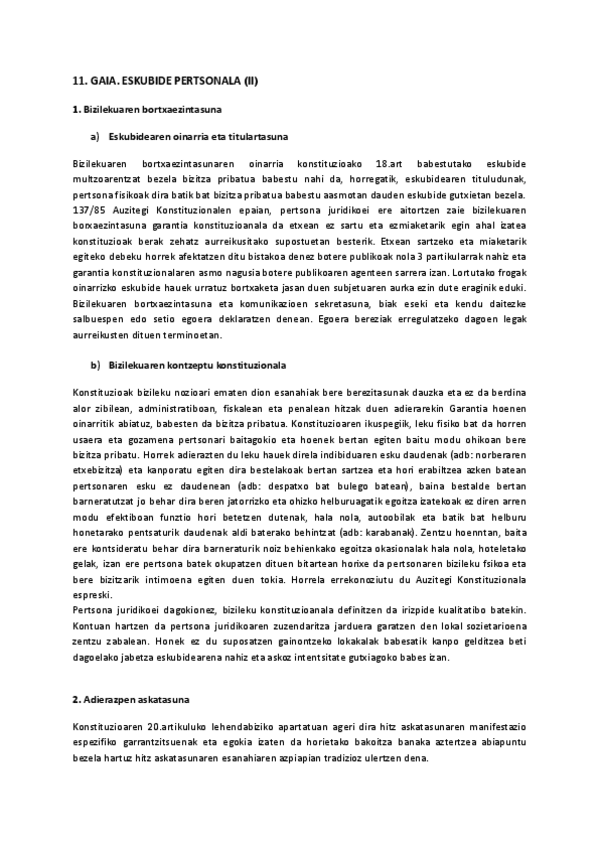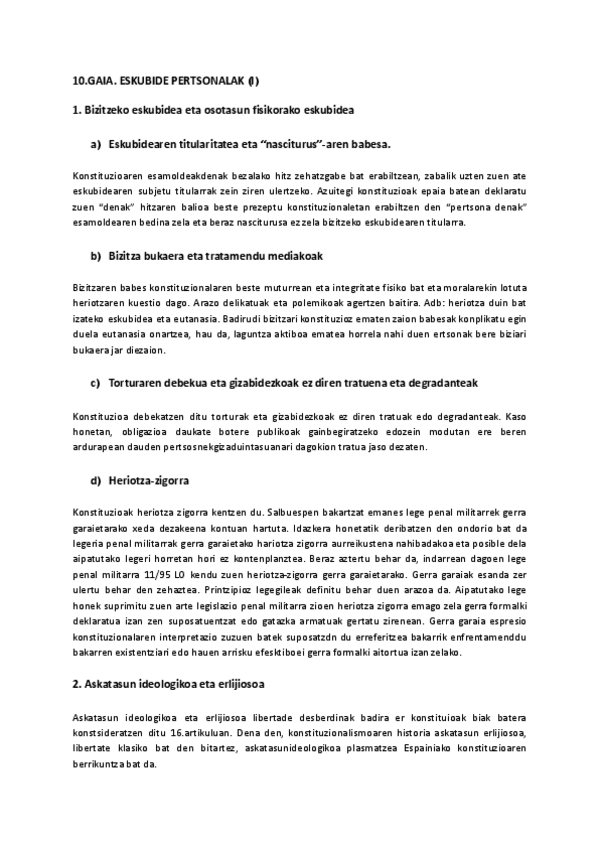 Konstituzio Zuzenbidea I - 10. eta 11. Gaiak: Eskubide pertsonalak (2025/2026)