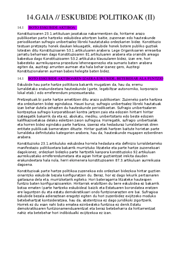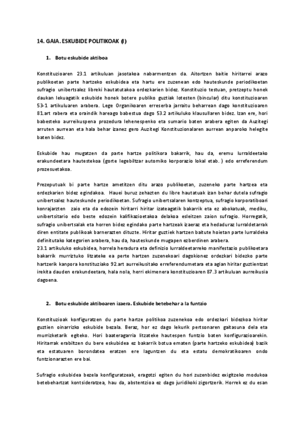 Konstituzio Zuzenbidea I - 13. eta 14. Gaiak: Eskubide politikoak (2025/2026)