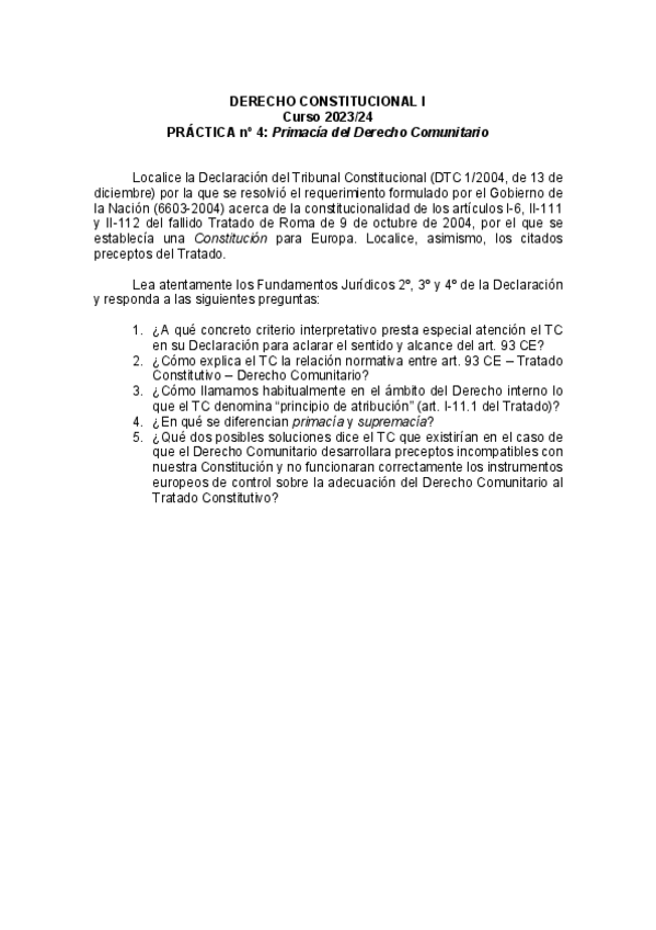 He publicado nuevos practicas de 1º Derecho Constitucional I: Práctica 4 CONSTITUCIONAL I: Primacía Derecho Comunitario.pdf