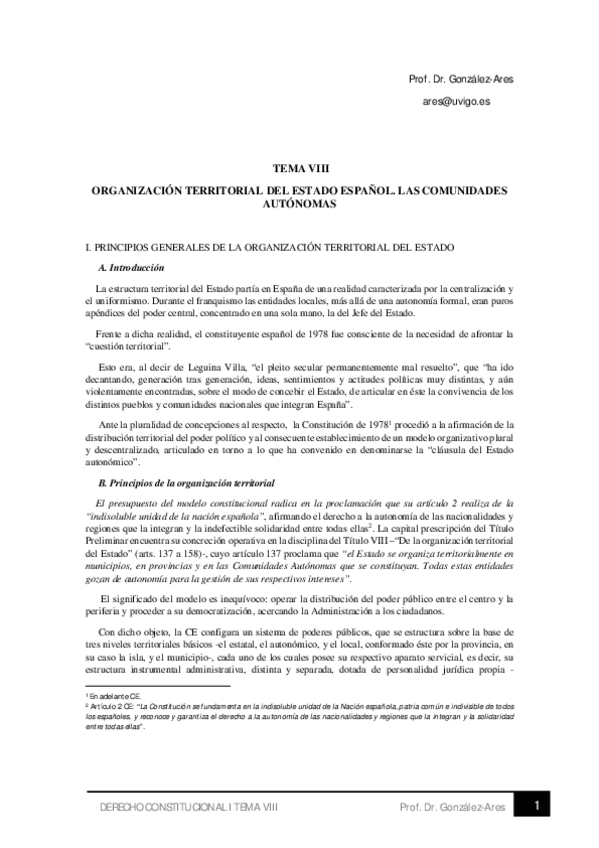 Apuntes completos de Constitucional I subidos por el profesor Agustín, Derecho UVigo Campus de Ourense