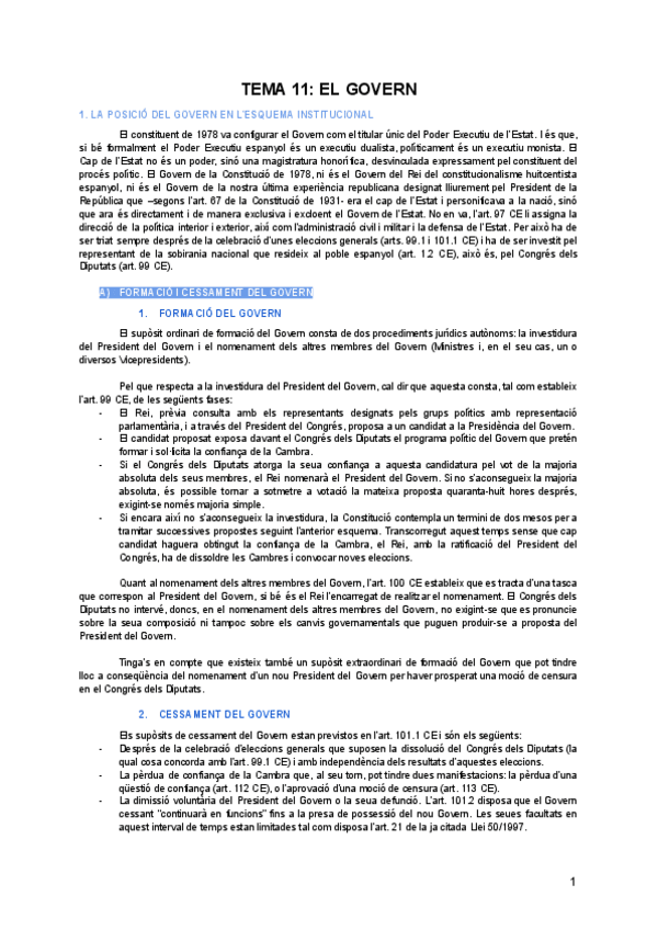 He publicado nuevos apuntes de 1º Derecho Constitucional I: TEMA 11 (val): Govern.pdf