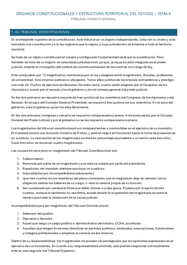 Órganos constitucionales y Estructura territorial del Estado - Tema 6