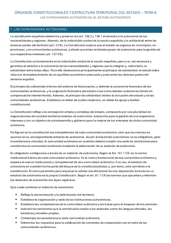 Órganos constitucionales y Estructura territorial del Estado - Tema 8