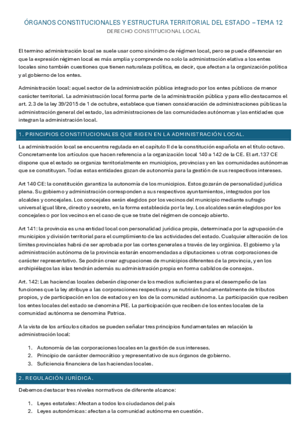 Órganos constitucionales y Estructura territorial del Estado - Tema 12