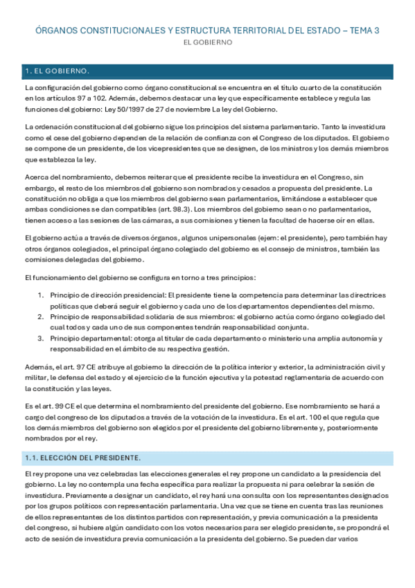 Órganos constitucionales y Estructura territorial del Estado - Tema 3