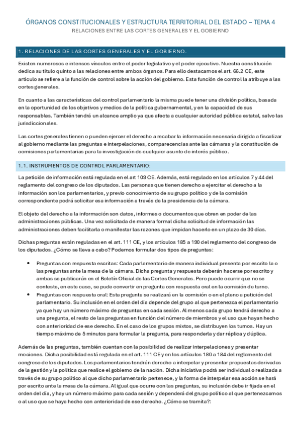 Órganos constitucionales y Estructura territorial del Estado - Tema 4