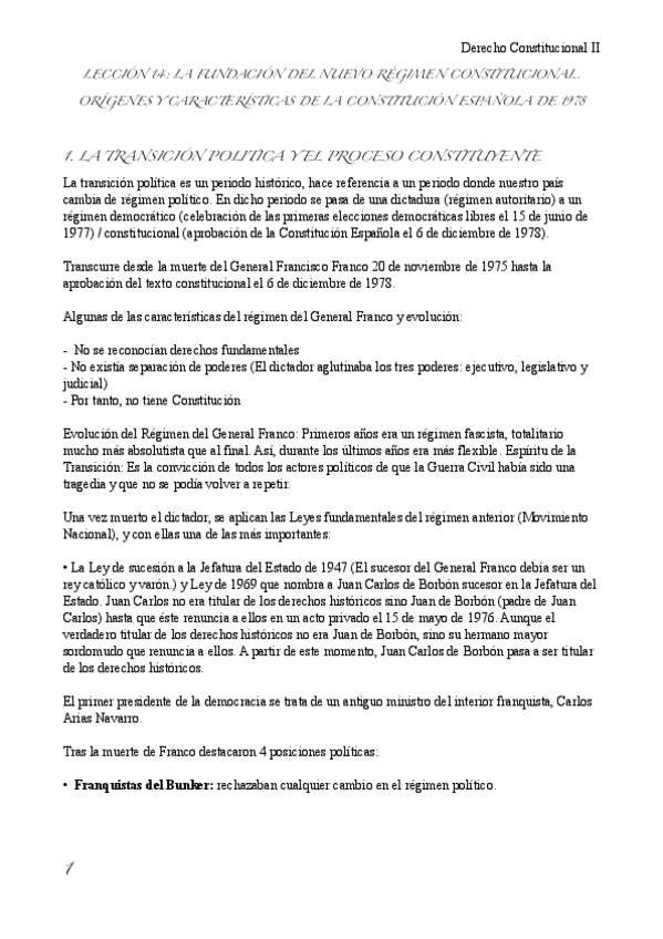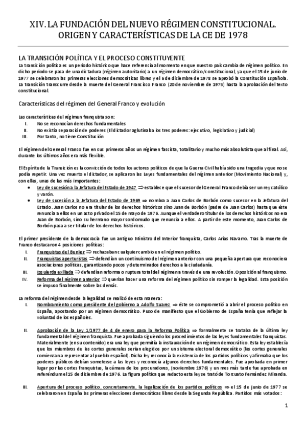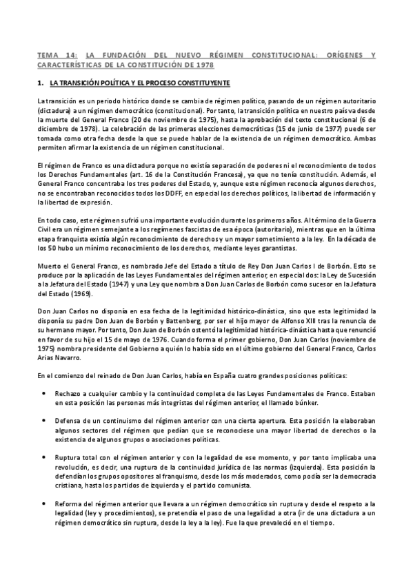He publicado nuevos apuntes de 1º Derecho Constitucional II: Tema 1 (14) (La Fundación del Nuevo Régimen Constitucional. Orígenes y Características de la Constitución Española de 1978) - Derecho Constitucional II.pdf