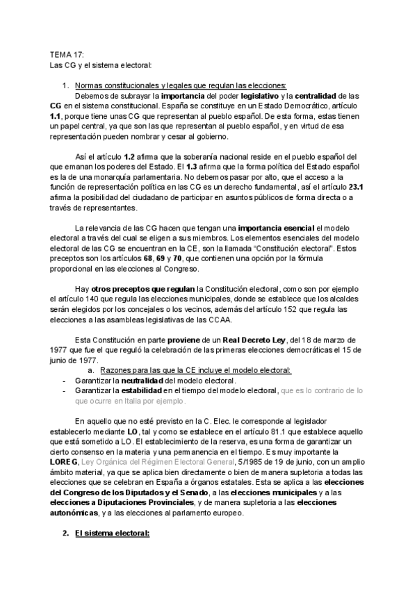 He publicado nuevos apuntes de 1º Derecho Constitucional II: Tema 4 (17) (Las Cortes Generales y el Sistema Electoral) - Derecho Constitucional II.pdf