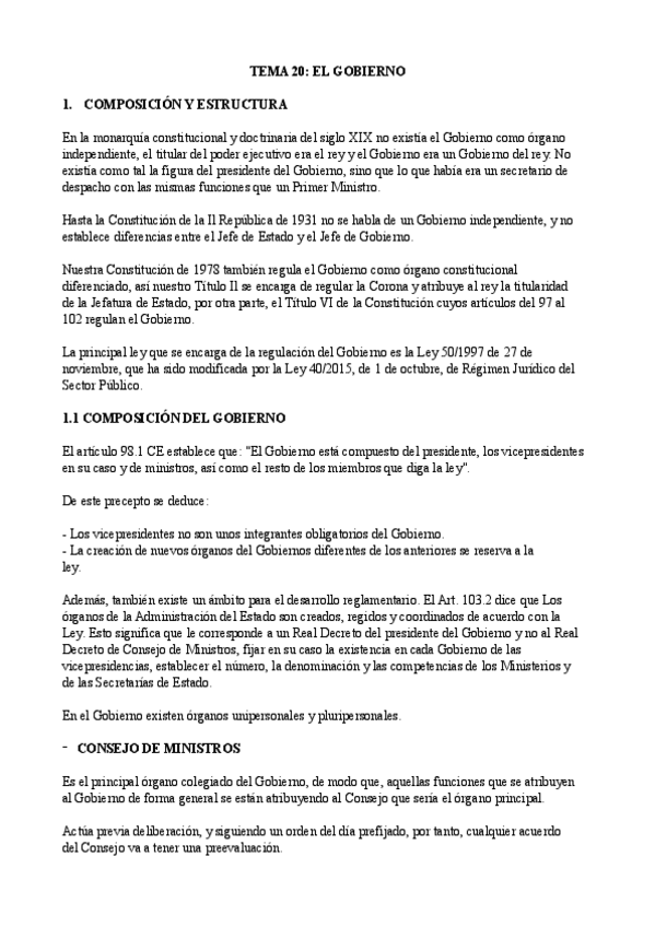 He publicado nuevos apuntes de 1º Derecho Constitucional II: Tema 7 (20) (El Gobierno) - Derecho Constitucional II.pdf