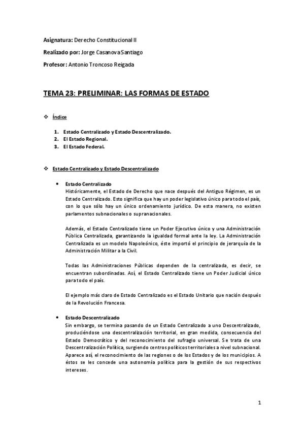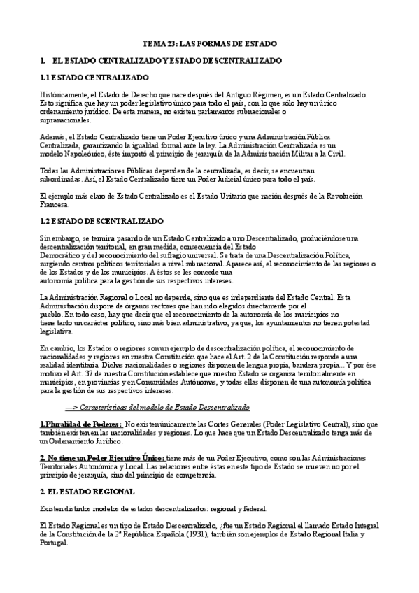 He publicado nuevos apuntes de 1º Derecho Constitucional II: Tema 10 (23) (Preliminar - Las Formas de Estado) - Derecho Constitucional II.pdf