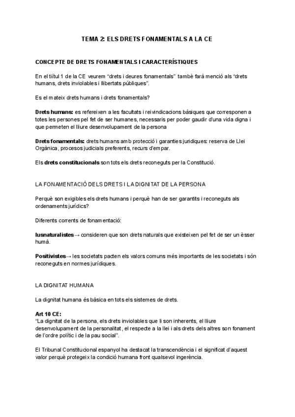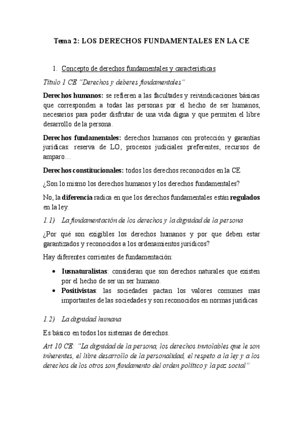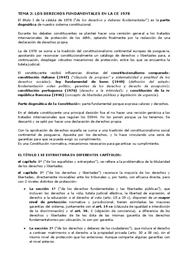 Tema 2 de la guía docente: derechos fundamentales y libertades públicas en la Constitución Española