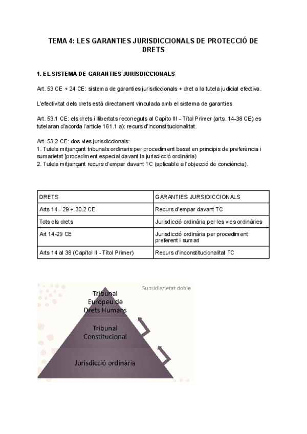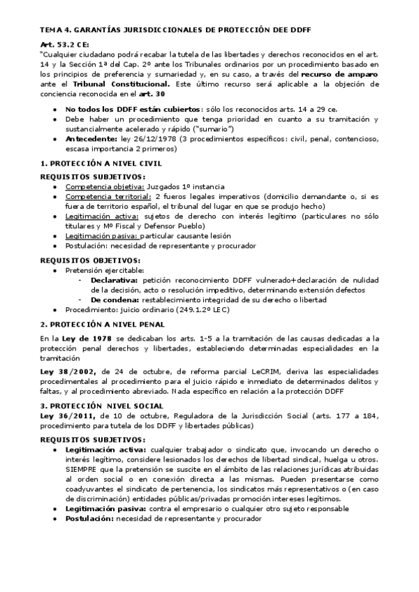 Tema 4 de la guía docente: garantías jurisdiccionales de protección de derechos