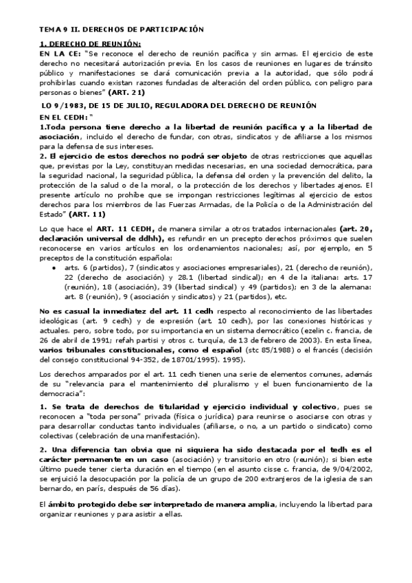 Tema 10 de la guía docente: derechos de participación social y política