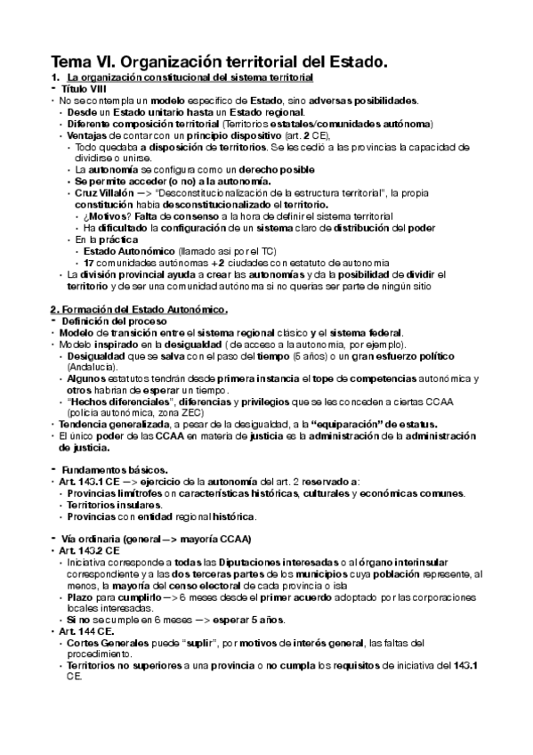 He publicado nuevos apuntes de 1º Derecho Constitucional: Organización del Estado y Sistema de Fuentes del Derecho: T6 - Organización territorial del Estado: Estado Autonómico.pdf