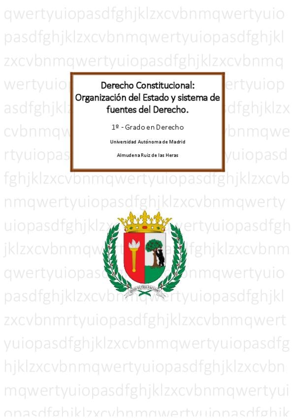 Temario Completo de Derecho Constitucional: Organización del Estado y Sistema de Fuentes de Derecho. Redacte los apuntes de tal manera que se imposible no entenderlo, yo conseguí sacar un 9 en la asignatura.