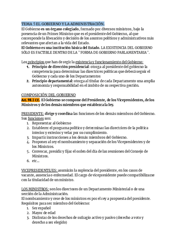 Apuntes - LECCIÓN 5. El Gobierno y la Administración.pdf