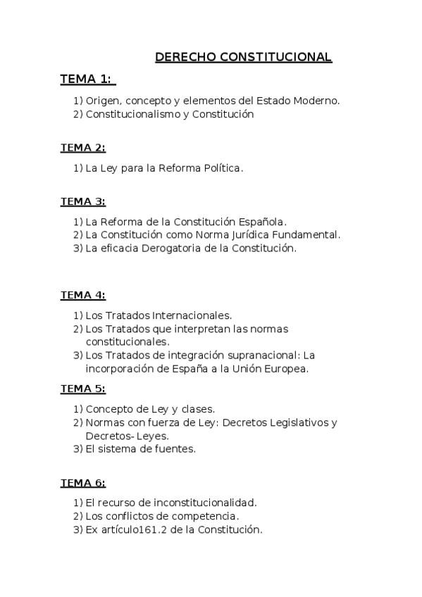He publicado nuevos examenes de 1º Derecho Constitucional: Lo que siempre entra en el 1 y 2 parcial Derecho constitucional.odt