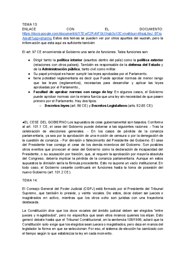 Apuntes resumidos del tema 1 al 6 y del 7 al 14 de Constitucional. Espero que os sirva y animo!