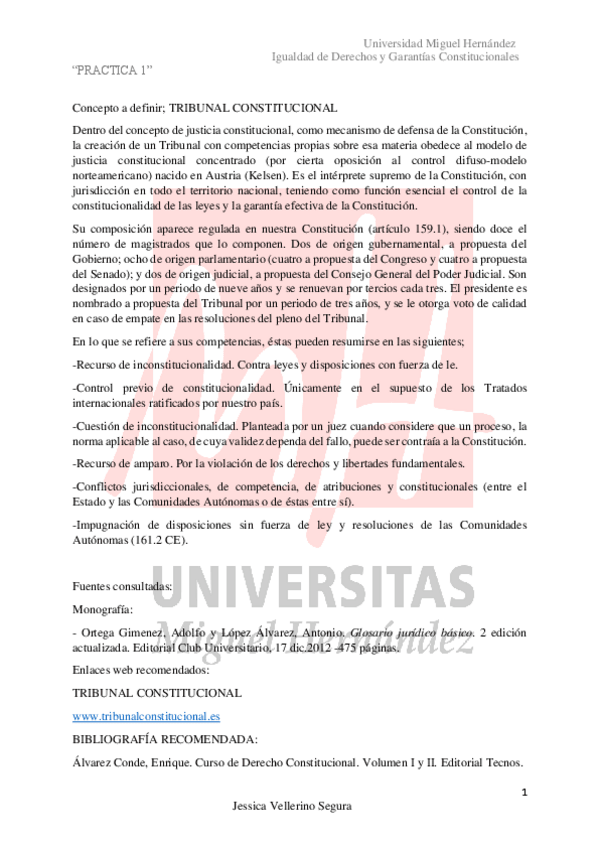 Resúmenes Derecho Constitucional, impartido por la profesora Nuria. Apuntes tomados acudiendo a clase cada día. Completos al 100%.