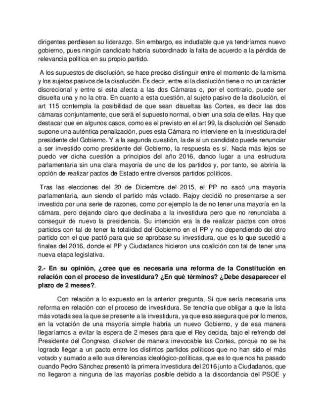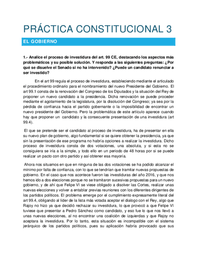 Práctica Derecho Constitucional Gobierno en funciones e investidura