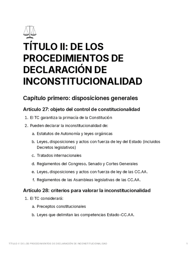 Título I Ley Orgánica 2/1979, de 3 de octubre, del Tribunal Constitucional.