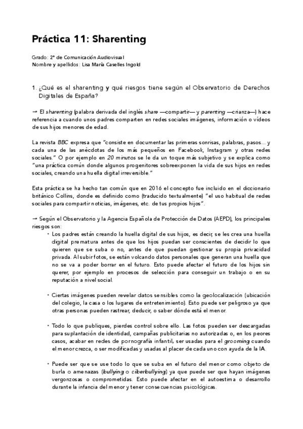 Práctica completa sobre el fenómeno del sharenting analizado desde la perspectiva del Derecho de la Comunicación.