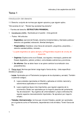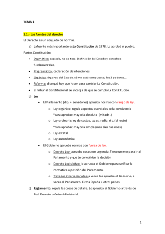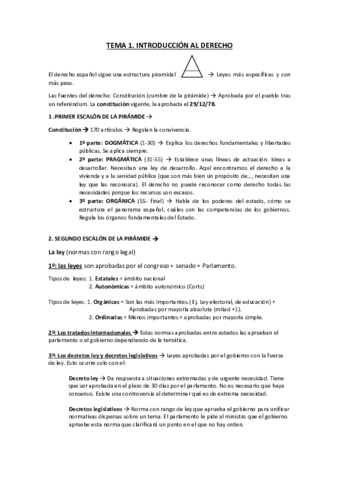 Apuntes completos asignatura de derecho (El tema 11 no entra para quien haga la continua, por eso no está)