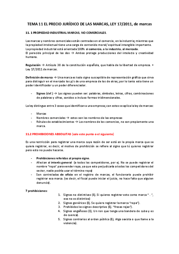 He publicado nuevos apuntes de 2º Derecho de la Comunicación: TEMA 11 EL PRECIO JURÍDICO DE LAS MARCAS.pdf