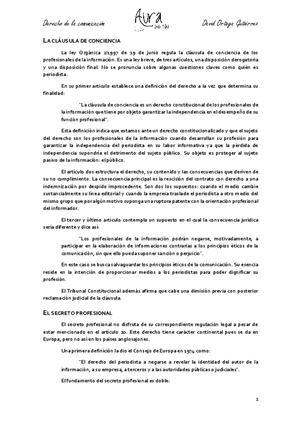 He publicado nuevos apuntes de 2º Derecho de la Comunicación: TEMA 7 LA CLÁUSULA DE CONCIENCIA Y EL SECTOR PROFESIONAL.pdf