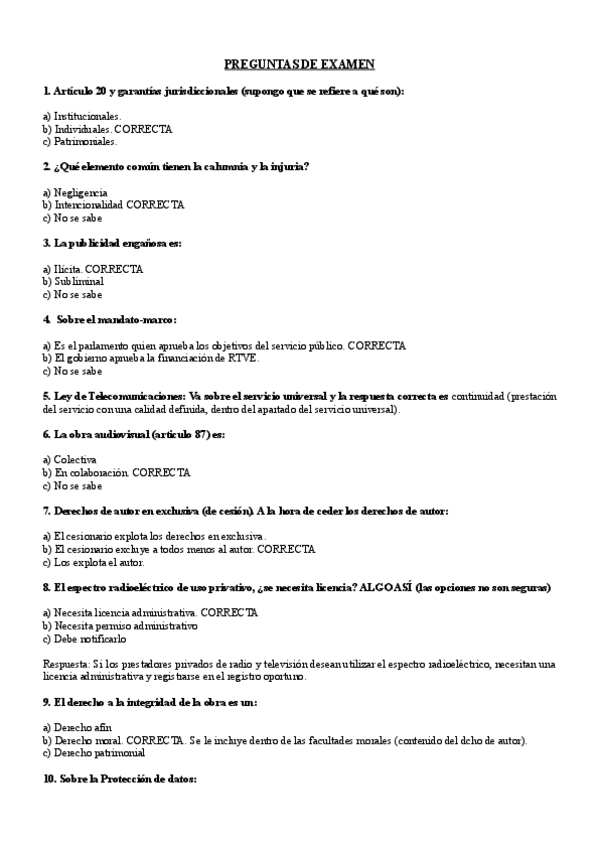 He publicado nuevos apuntes de 2º Derecho de la Comunicación Audiovisual: Preguntas-examen.pdf