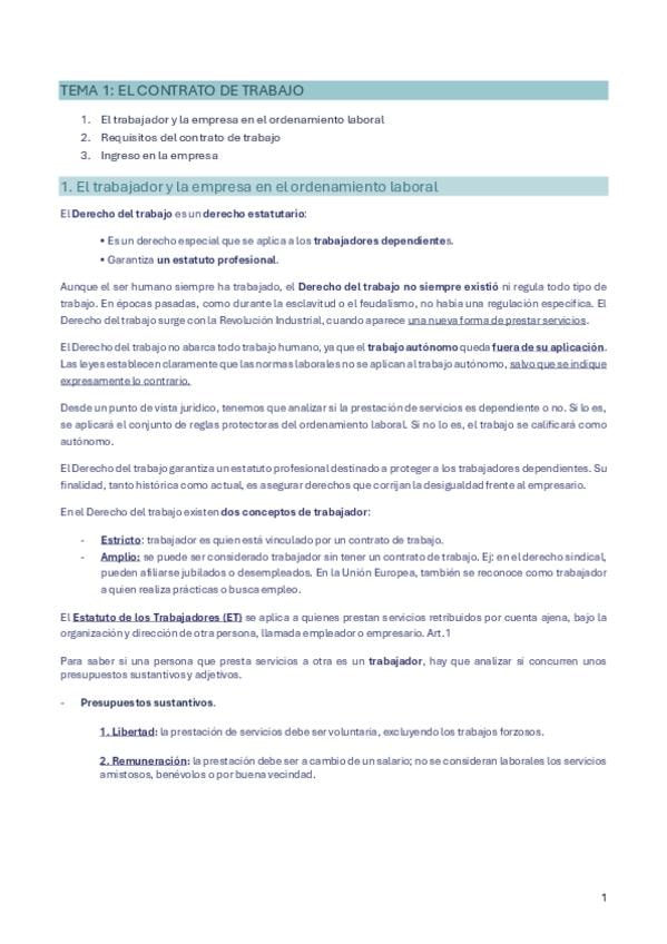 He publicado nuevos apuntes de 1º Derecho de la empresa: Derecho laboral. TEMA 1- el contrato de trabajo.pdf