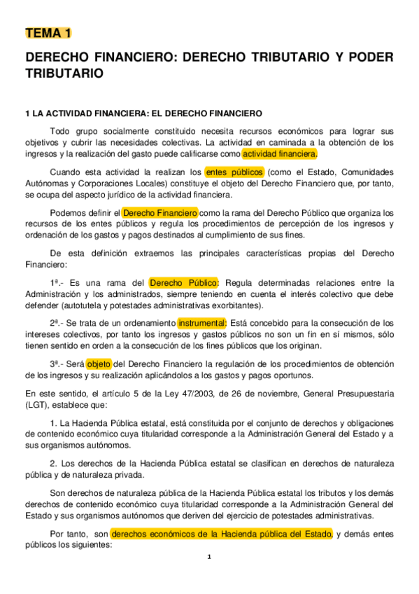 DERECHO FINANCIERO TEMARIO COMPLETO