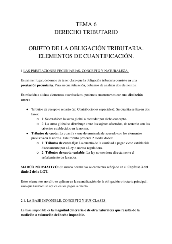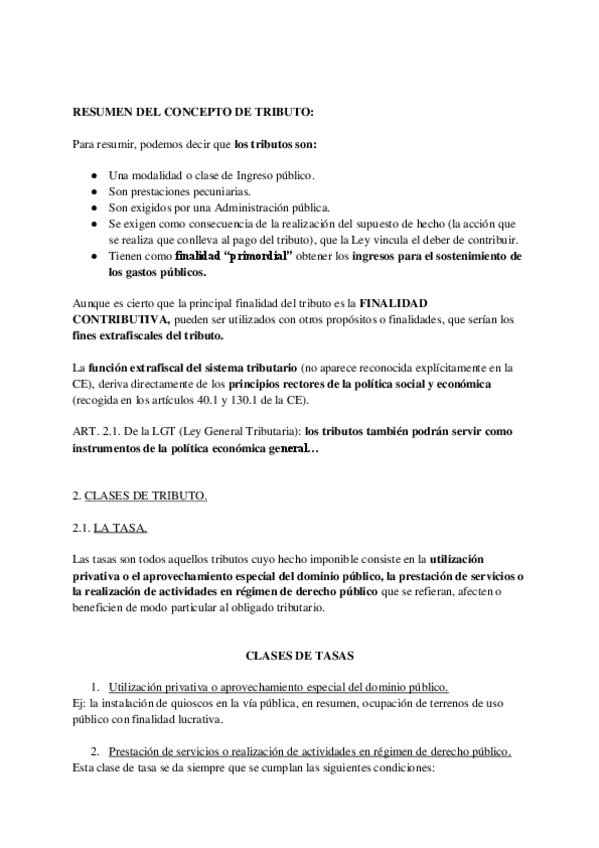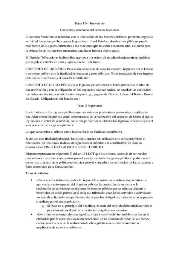 Resumen de Derecho Tributario (temas 1 a 6) Con este resumen he sacado un 9´2 de nota final en la parte de Tributario