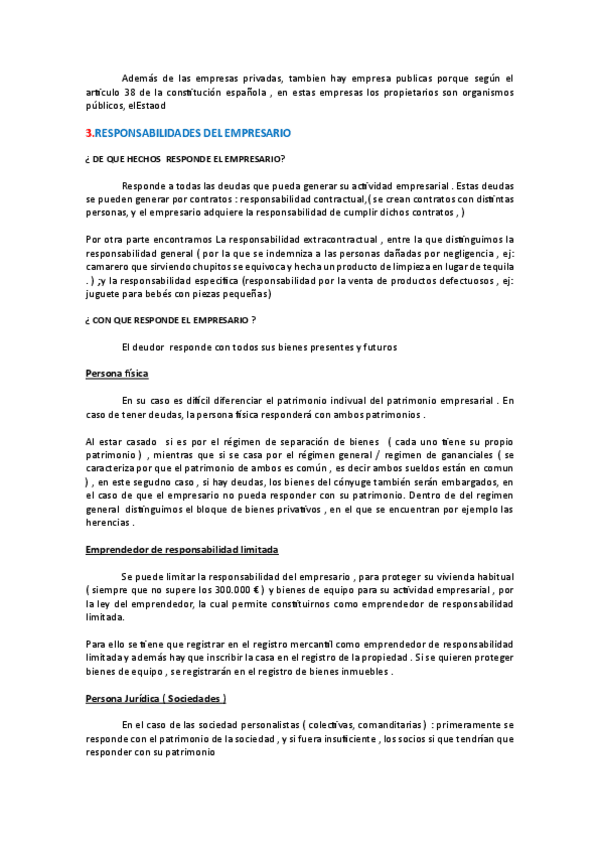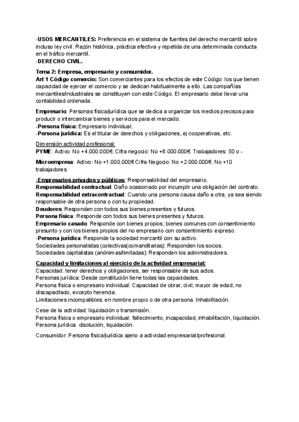 Temas 3 y 4 de la asignatura Derecho de la Empresa de 1º curso