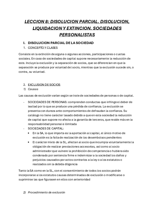 DISOLUCIÓN PARCIAL. DISOLUCIÓN, LIQUIDACIÓN Y EXTINCIÓN DE SOCIEDADES. SOCIEDADES PERSONALISTAS